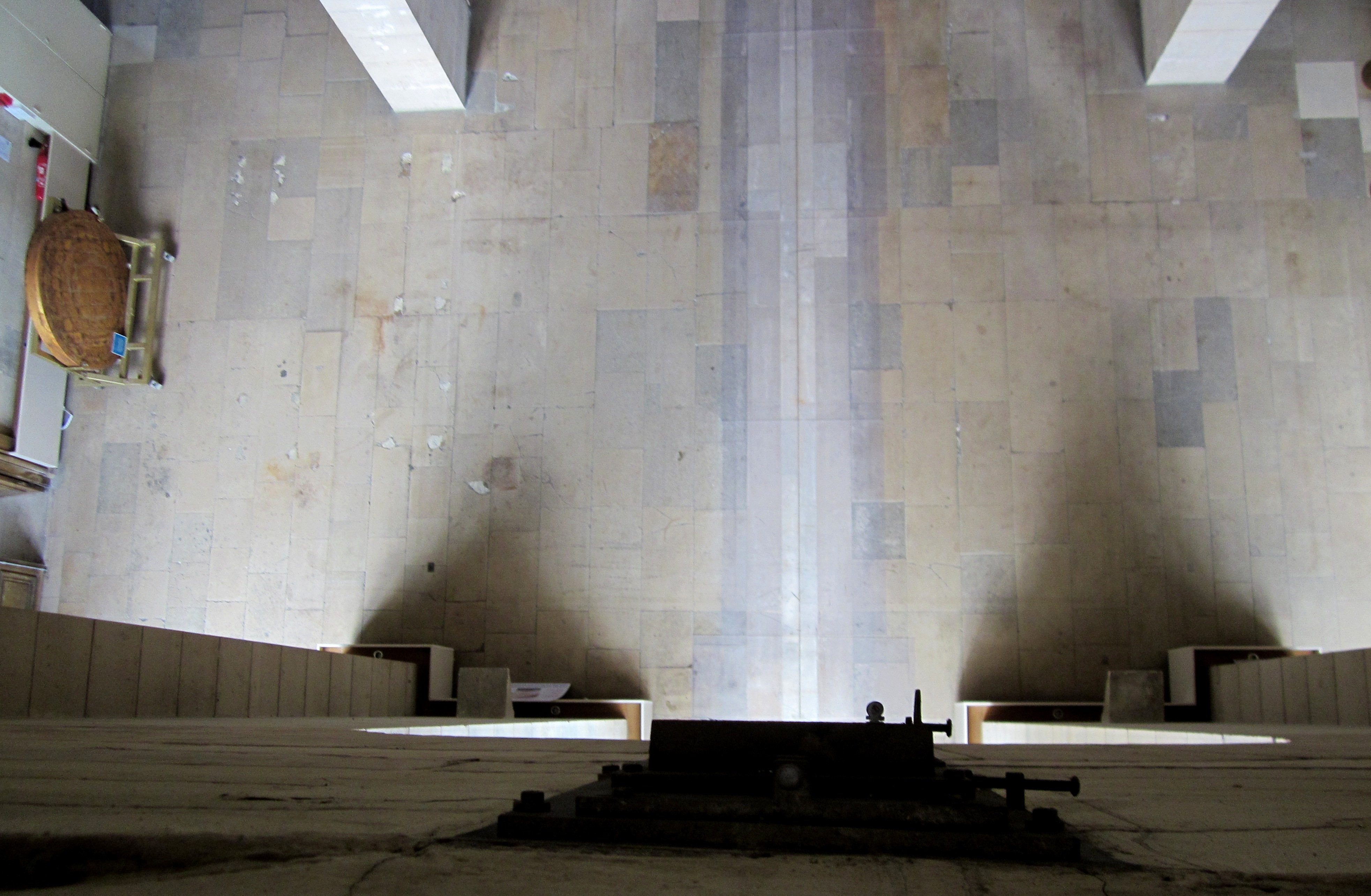 Le gnomon actuel n'est plus celui de 1729. La plaque en cuivre, à travers laquelle avait été percé l'oeilleton, a disparu. Depuis le pavé de la salle Cassini, le visiteur peut simplement constater la présence, haut placé, d'un trou de lumière très intense ; c'est en réalité une lentille biconvexe de 85 mm de diamètre, qui fait maintenant office de gnomon. On ne peut dater précisément le remplacement de la plaque par une lentille.